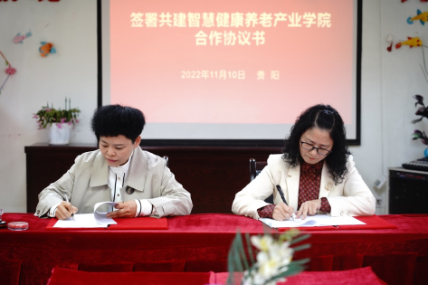 为深入贯彻落实党的二十大精神和新时代职业教育新要求,深入推进产教融合发展,11月10日下午,我院与贵州瑞颐鑫医疗健康管理有限公司共建智慧健康养老产业学院签约揭牌仪式在贵州瑞颐鑫医疗健康管理有限公司旗下观山湖区养老服务中心2楼会议室举行。我院党委副书记、院长江智霞,党委委员、副院长洪阳、潘忠伦、柏晓玲,贵州瑞颐鑫医疗健康管理有限公司董事长唐曼唯,总经理蔡华超,副总经理唐彬彬,医疗业务院长陆晓萍,养老业务院长杨蕃佳及双方相关部门人员参加此次揭牌仪式。仪式由杨蕃佳主持。