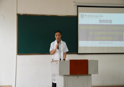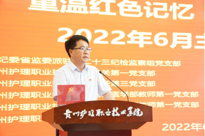 为深入学习贯彻省第十三次党代会精神,切实加强对党员干部特别是年轻同志的警示教育和培养管理,按照省纪委省监委机关党委、省卫健委机关党委和学院党委的有关要求,6月22日下午,省纪委省监委派驻第二十三纪检监察组党支部、省卫生健康委机关党办党支部到我院金海校区与我院个党支部党员同志及部分学生入党积极分子以“重温红色记忆 感悟初心使命”为主题,联合开展6月主题党日活动。