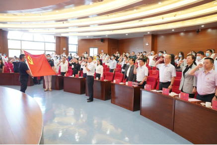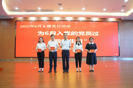 主题党日活动最后,邰国祥带领全体党员重温入党誓词,并为6月份入党的党员颁发政治生日贺卡。
