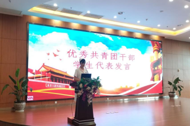 来自2020级高职1班的杨昕宇同学代表“优秀共青团干部”发言,她分享了自己学习习近平总书记在“七一”重要讲话精神的感悟和体会,号召同学们要做一名有信仰、讲政治、重品行、争先锋、守纪律的青年学生干部,逐梦新征程,贡献新时代!