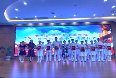 吴忠红为荣获"五四红旗团支部"班级的代表颁发荣誉证书