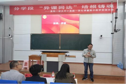 教而不研则浅,研而不教则空。在研讨交流环节中,我院马克思主义教学部张菁菁老师作为大学阶段思政课教师进行了说课。我院宣传统战部副部长、思政教师李业明对本次教学展示作点评,谈到上好思政课,讲好中国故事,将现实生活与学科理论融为一体,感受到了思政课一体化的别样风采,感受到了教与研的快乐和收获。此外还聆听了贵阳市教科所政治教研员石松老师和三位大学教师龚春芳、贵州师范大学历史与政治学院副教授龚春芳、贵州师范大学马克思主义学院副教授王忠丽的精彩点评。