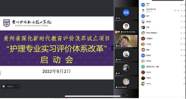 会上,侯芳宣读了《贵州省教育厅关于贵州省深化新时代教育评价改革试点立项的通知》,与会人员对该试点项目的风险进行了讨论与评估,对《关于贵州省深化新时代教育评价改革试点项目“护理专业实习评价体系改革”实施方案(讨论稿)》提出了修改意见与建议。