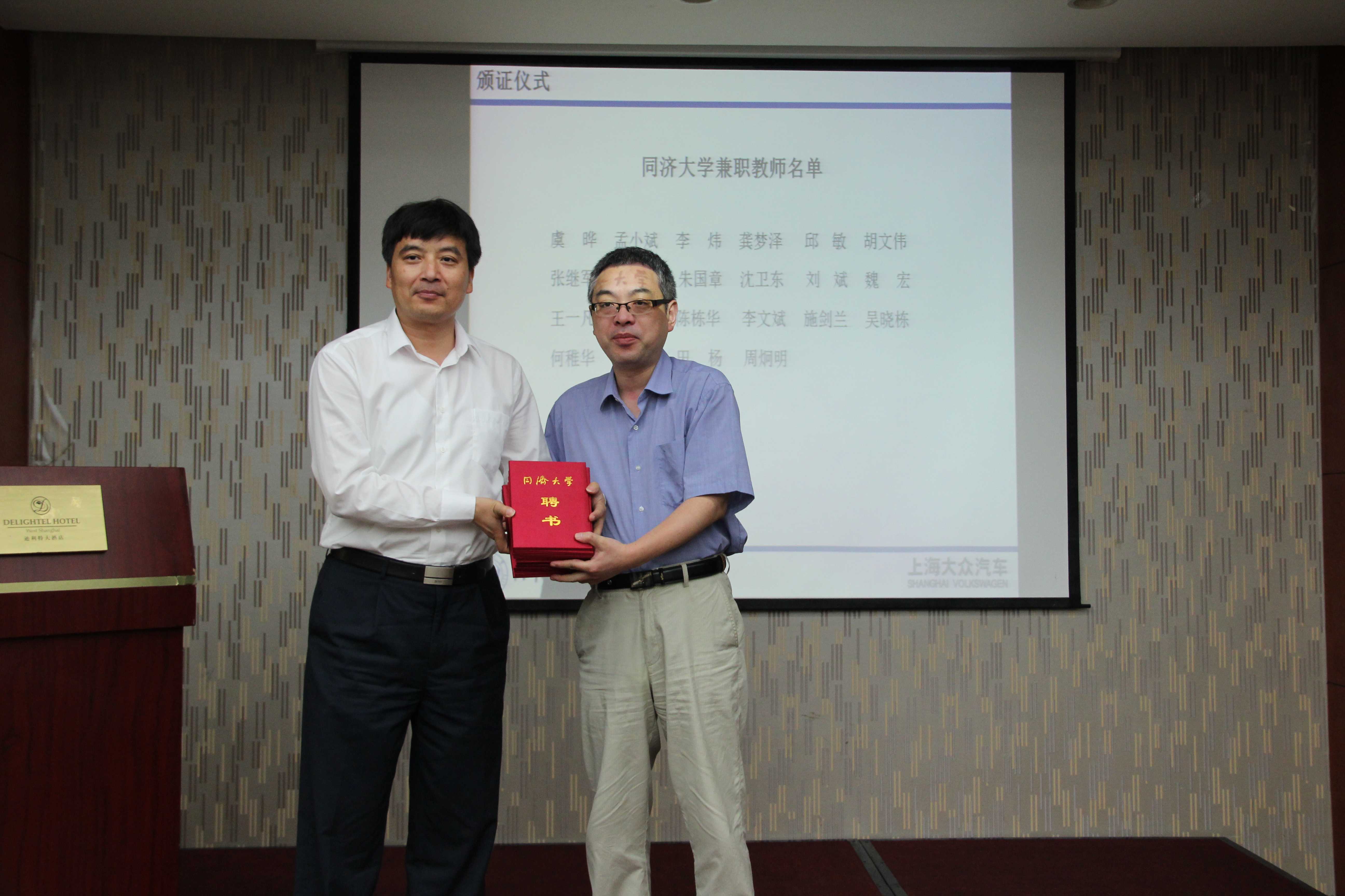 研讨会以先总括、后分组、再总结的形式进行,分组按照合作交流和专业对口交流分为两个大组。会场气氛非常热烈,参会嘉宾积极参与讨论,发表各自的想法,围绕不同主题进行了深入、广泛的沟通交流,并提出了很多建设性意见。研讨会上同时进行了同济大学兼职教师的颁证仪式,共有22位上海大众工程被聘为同济大学兼职教师。