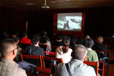 我院全体人员在麻怀干劲馆认真听讲解、观看视频