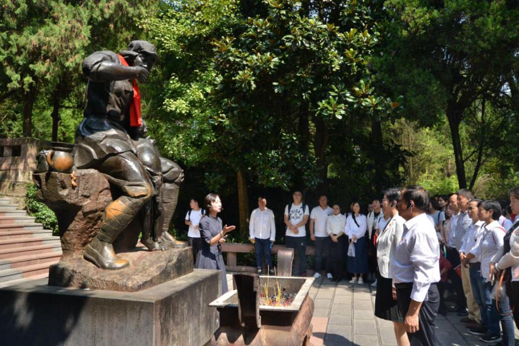 大家随后瞻仰了纪念碑后的红军烈士纪念墙,到邓萍墓前,聆听了邓萍烈士的英雄事迹,祭奠了邓萍烈士。接着,大家来到了著名的红军坟前,聆听了红军“菩萨”龙思泉卫生员帮助当地贫苦百姓看病治病,最终英勇牺牲的英雄事迹。在场的老师们都被他们的英雄事迹感动得热泪盈眶。