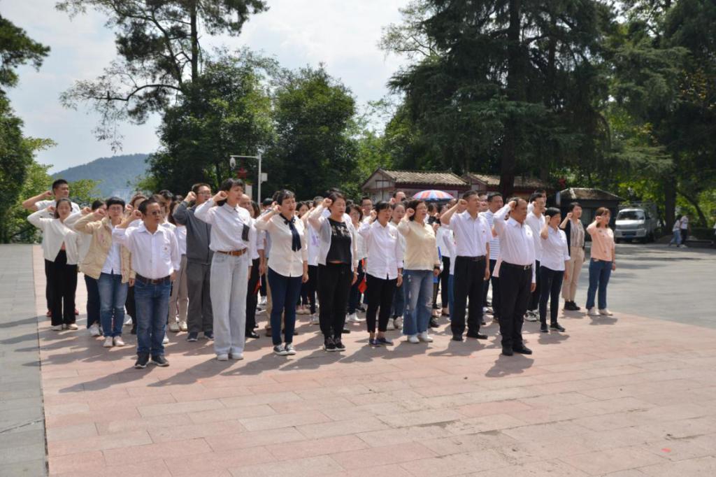 在庄严肃穆的纪念碑前,大家整齐列队,怀着崇敬的心情,向烈士们敬献了花篮,表达了对先烈们深深的哀思。在纪念碑下,全体党员庄严宣誓,重温入党誓词。