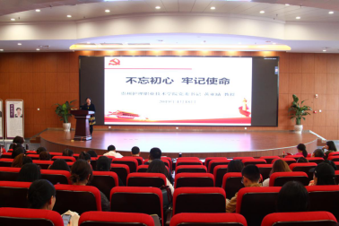 4月18日下午3点30分,我院2019年“新时代学习大讲堂”第一期在学院学术交流中心举行。我院党委书记黄亚励和党委副书记、院长李俊华分别作了主题为《不忘初心、牢记使命》和《心怀责任 勇于担当》的思想政治教育专题讲座。
