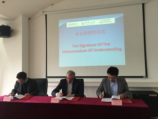 11月21日,同济大学、上海氢能利用工程技术研究中心与杰斯康软件(上海)有限公司(Gexcon)在我校签署了战略合作备忘录。同济大学汽车学院副院长魏学哲教授、上海氢能利用工程技术研究中心刘绍军副主任、Gexcon公司CEO Sturle H Pedersen先生分别代表三方签字。
