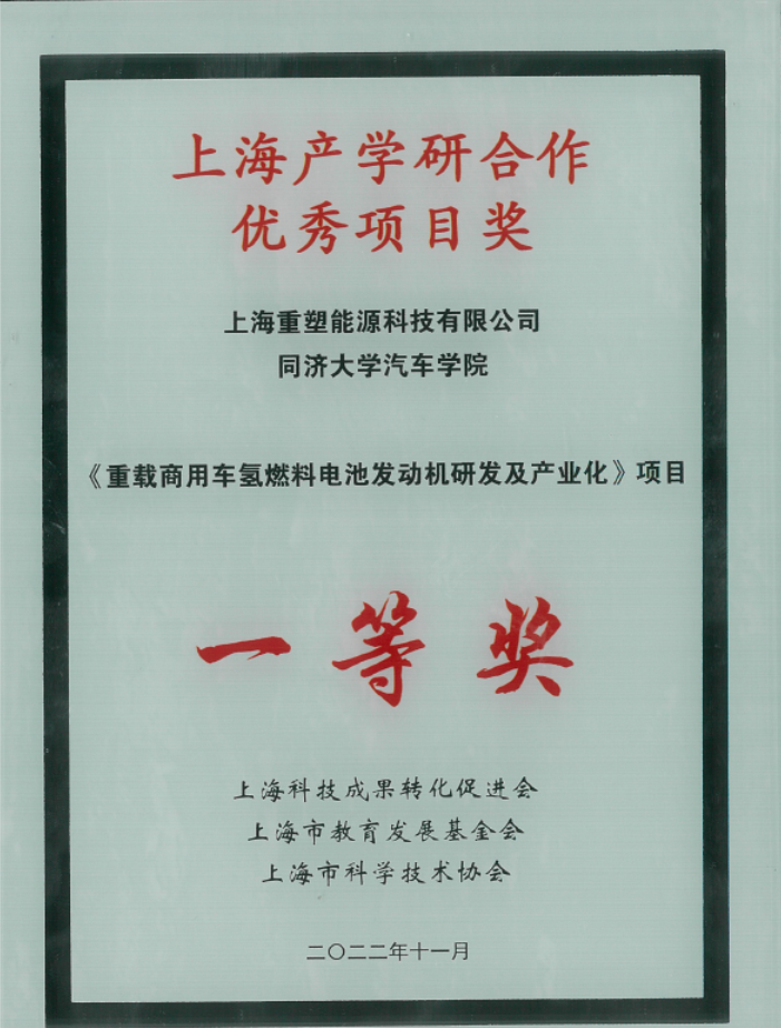 近日,第十四届“上海产学研合作优秀项目奖”揭晓并颁奖。同济大学汽车学院参与项目“重载商用车氢燃料电池发动机研发及产业化”荣获一等奖。