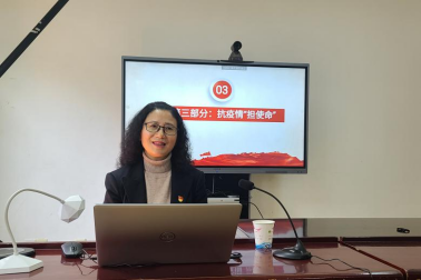 最后,潘忠伦副院长朗诵了由江智霞院长创作的名为《抗“疫”感》的诗歌做为本学期开学第一课结语: