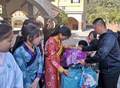 贵定县公安局在开展“五长·六进四访”工作中,了解到我院西藏同学在校学习三年期间只能回藏一次,寒假盘江镇翁城河岸边,冬季气温在零下3度左右,较为寒冷,为使异乡求学的西藏班同学能度过有“温度”的冬季,感受祖国大家庭情谊,杨仂同志一行为同学们送上了衣物、被子等过冬御寒日常生活用品,希望西藏班的同学们将贵定县当作第二故乡,在三年的学习时间里克服困难、锤炼品格,努力完成学业,早日报效祖国、不负青春韶华。