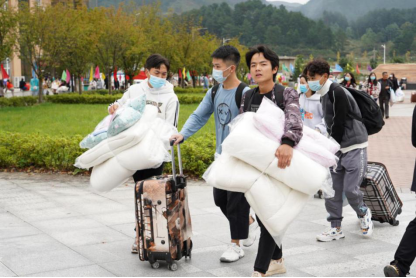 秋日和煦的暖阳下,学子们步履轻快、神采奕奕,尽管戴着口罩,也还是能看见他们笑靥如花。他们三俩成群,身背重重的行囊,嬉笑打闹着,互帮互助着,阔步走进校园,至此开始迎接全新的大学生活。