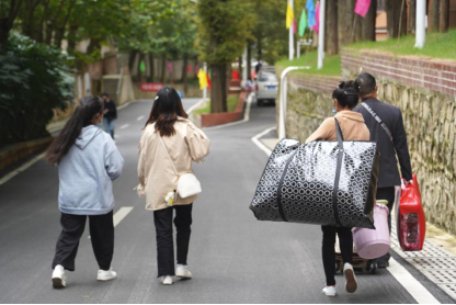 人群中让人无法忽视的还有那一个个坚实身影,他们默不作声为孩子们扛起行囊,脸上满是不舍,嘴上止不住地叮咛……这全都是父母满满的爱,也是父母对孩子们美好大学生活的殷切期盼。
