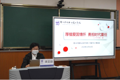 党委书记黄亚励为同学们讲授题为《厚植爱国情怀 勇担时代重任》的开学第一课。黄书记结合疫情趋势、时事政治和贵州及学院的发展,用生动鲜活的例子阐述了如何充分理解“社会主义制度的显著优势”、充分了解新时代百姓富生态美的多彩贵州新篇章、了解伟德国际1946新发展三个方面的内容,希望同学们珍惜这来之不易的开学复课并激励同学们在崭新的大学生活中要坚定马克思主义、共产主义信仰,坚定中国特色社会主义信念;坚持爱党爱国爱民爱社会主义制度,厚植家国情怀;坚持“创新、协调、绿色、开放、共亨”新发展理念,秉持“医者仁心 尚德尚行”校训,培育高尚品格,练就过硬本领,把个人的理想和追求融入党和国家事业发展之中,用今天踏踏实实的努力奠定明天的职业高度和人生高度,不断完善自己、提升自己,最终成长为让患者信任、让家属放心、让人民满意的白衣天使,成长为祖国最需要的守护人民健康的复合型技术技能人才。