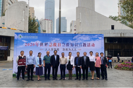 9 月12 日是世界急救日,今年的主题是“疫情下的急救”。为加快推进公民自救互救知识与技能培训工作,最大限度降低突发事件、自然灾害及突发公共卫生事件对人民群众带来的伤害,由贵州省卫生健康委主办的“2020年度贵州省9.12世界急救日宣传活动暨急救知识科普活动”在贵州医科大学附属医院第一住院部前广场举行。在徐晓筑副院长的带领下,我院实验实训中心和护理系共10位老师参加了此次活动。此外,参与活动的还有来自贵阳一中的在校学生、消防官兵、轨道交通公司和现场群众等200 余人。