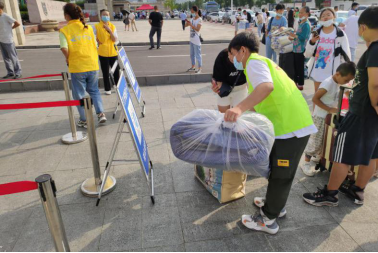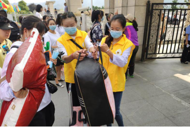 教师及学生志愿者义务帮助学生搬运行李