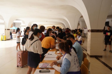 严把入口关是疫情防控的重要环节。为避免人流拥挤,学院专门设置了新生报道通道以及老生报道通道,将学生在校门口两侧进行分流。学生和家长进入校园需持绿色健康码,排队进行体温检测,进行行李消毒之后,方可进入学校。多名教师和学生志愿者则在沿途帮助学生及家长搬运行李。整个过程严谨细致,各个环节工作人员尽职尽责,只为严格执行疫情防控措施,保证所有学生健康安全。