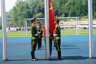 8月31日上午,我院2020年秋季学期第一次升旗仪式在两校区同时进行。学院党委书记黄亚励、副院长徐晓筑、潘忠伦及花溪校区全体教师、花溪校区全体就读学生参加花溪校区升旗仪式。党委副书记、院长李俊华,党委副书记吴忠红,各系(部、中心)、处负责人及中高职班主任、辅导员、金海校区就读全体学生参加金海校区升旗。2020级中职新生身着迷彩服,踏着整齐的正步,嘹亮的口号响彻了整个操场,将我院学子积极向上的精神风貌展现得淋漓尽致。