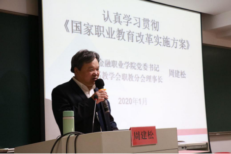 2020年1月,我院组织开展医学类人才干部办学治校能力及骨干教师(辅导员)综合能力提升培训班,专门邀请浙江金融职业学院党委书记周建松教授对《国家职业教育改革实施方案》进行解读,请上海第二工业大学教研所所长陈解放教授对新形势下高职教育的内涵发展进行分析,并专门解读了《国家职业教育改革实施方案》,让我院参训教师受益匪浅。