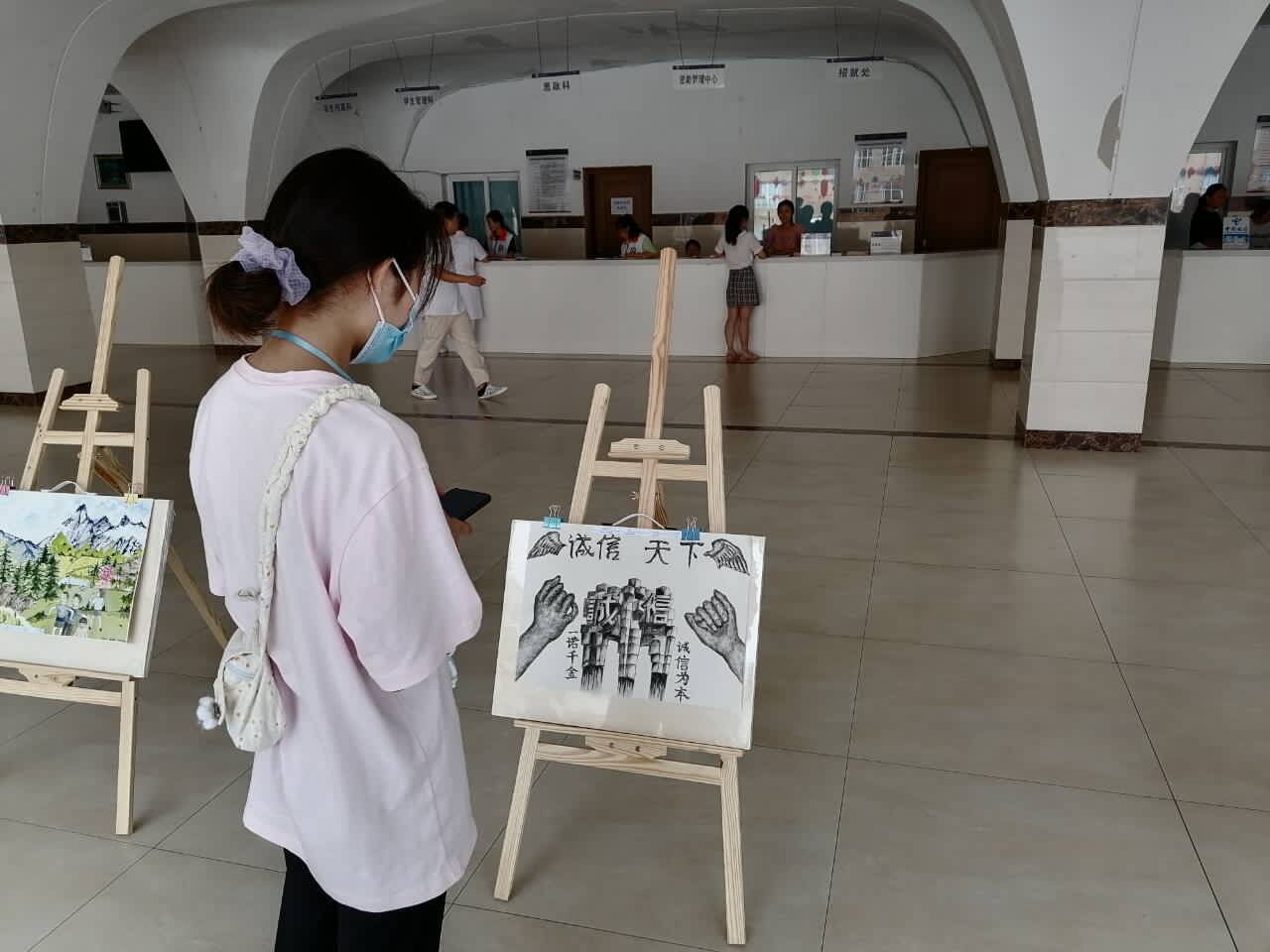 此次活动,参赛作品共104幅,同学们通过艺术作品展现了自己对“诚信” 主题的理解和认识,给人视觉冲击的同时,也增强了艺术的表现力。