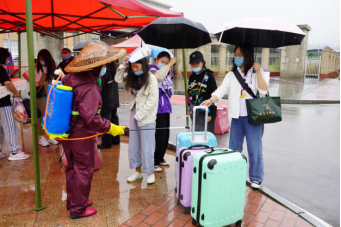 迎接第四批次学生返校的人员