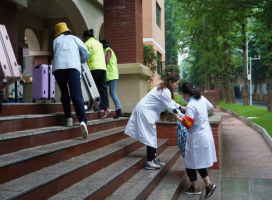 返校当天,金海校区下着大雨,寒意袭人,师生志愿者和保卫后勤等工作人员,不畏风雨,帮助同学们搬运行李、做指引。他们的头发和衣服都淋湿了,但依然坚守岗位,护送学生安全到达寝室。雨一直下,“红黄绿紫”来来回回穿行如梭,他们的无私奉献为校园增添了最靓丽的色彩。
