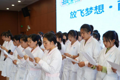 诗朗诵结束后,学院党委副书记吴忠红致辞。他首先对大家圆满完成学业表示热烈的祝贺,肯定了三年多来同学们的成长与进步。他以“感恩、追梦、奋进”三个关键词鼓励同学们,要感恩那些所有关心和帮助过自己的人;要努力奔跑,不断追逐自己的梦想;不要因为眼前的困难而退缩,不忘学习的初心,牢记“医者仁心、尚德尚行”的校训,用“有志者事竟成”的信心,踏上新的学习、工作的征程,并欢迎各位学子常回家看看。