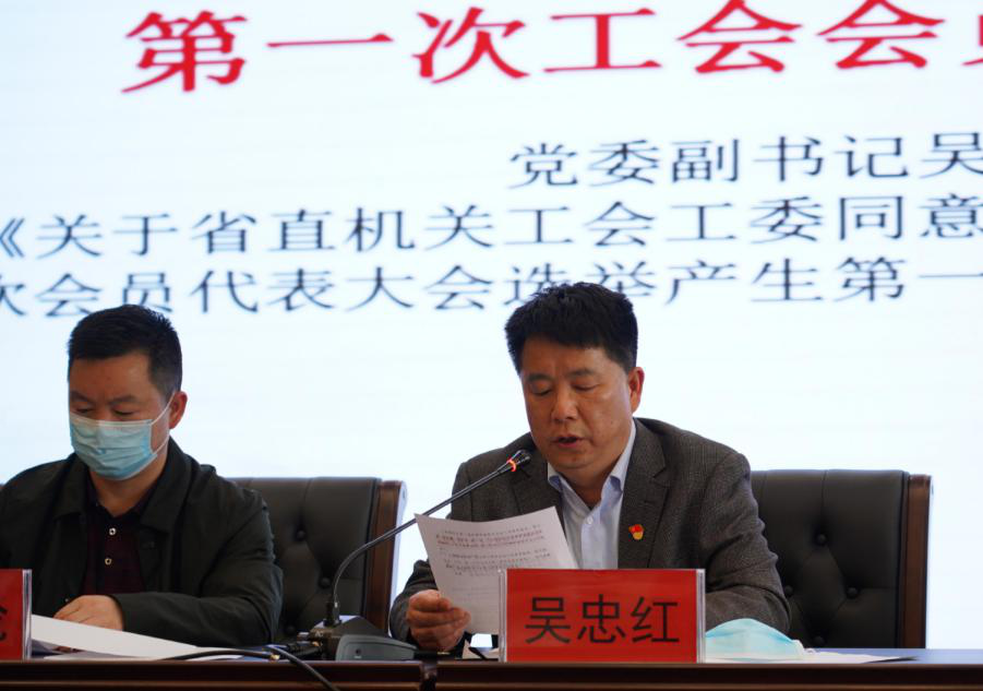 大会在庄严的国歌声中拉开帷幕。吴忠红副书记首先宣读了省直机关工会工委《关于同意伟德国际1946成立工会暨召开第一次工会会员代表大会选举产生第一届工会委员会的批复》。文件正式批准我院工会成立并明确我院第一届工会委员会为9名委员,经费审查委员会为5名委员,女职工委员会为4名委员。