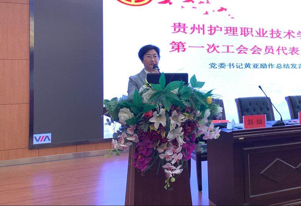 黄亚励书记发表了讲话。她指出,这次大会是在深入学习贯彻落实党的方针政策、不断提升工会工作科学化水平、团结动员广大教职员工为实现 “中国梦”、坚决助力2020年脱贫攻坚战再创佳绩、再立新功的新形势下召开的一次大会,对于动员和组织广大教职员工深入学习贯彻党的十九大精神和群团组织改革精神、建设中国特色社会主义工会和全面推进工会工作具有重要意义,是我院工会工作具有里程碑意义的开端。以此次大会为新的起点,黄书记希望今后的工会工作能不断创新发展并提出五点要求:一是坚持主动自觉地接受党对工会的全面领导,加强工会内部党组织建设,切实承担起引导职工群众听党话、跟党走的政治责任;二是完善组织职能,建立健全工作机制,团结带领广大职工群众积极参与民主管理,为学院建设发展贡献力量;三是坚持贯彻落实以人民为中心的发展思想,切实维护职工群众权益,进一步增强职工群众的获得感,努力满足职工群众对美好生活的需求;四是发挥纽带作用,主动为职工群众排忧解难,把学院党委和工会组织的关怀送到职工群众心中,使他们真正感受到组织的温暖;五是要加强工会工作精准有效,搭建服务展示教职工工作平台,打造工会服务教职工工作品牌。