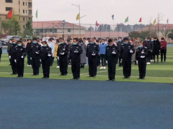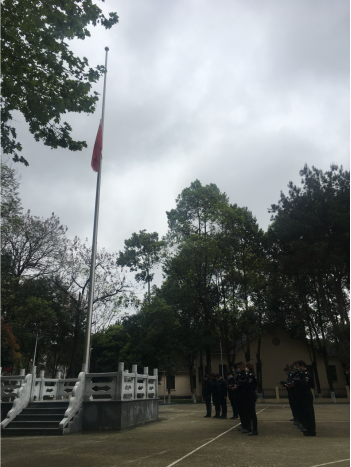 学院第一时间传达国务院公告精神,学院官方网站主页、微信公众号首页调为黑白色,以示哀悼。上午10时,学院党委书记黄亚励,党委副书记、院长李俊华,党委副书记吴忠红,党委委员、副院长徐晓筑分赴金海校区和花溪校区,同学院疫情防控工作各小组成员、驻守校园的教职工、后勤服务员工及物业管理人员一道,面向已降半旗的国旗台肃穆而立,向因抗击新冠肺炎疫情斗争牺牲烈士和逝世同胞肃穆默哀3分钟,表达深切哀悼。
