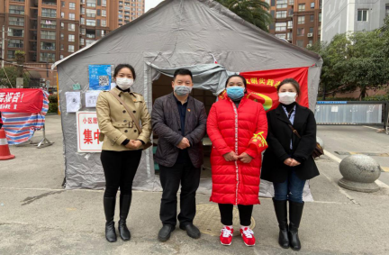 潘忠伦同志(左二)一行在乌当区环溪居委会街道办事处慰问学院志愿者同学