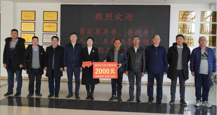 在新春佳节来临之际,1月22日,贵定县县委副书记刘亚文、县政府副县长刘伟、县委组织部长敬鹏、县人大常委会副主任封运美、县政协副书记李维庆一行到我院金海校区开展新春慰问活动,向坚守岗位的学院教职工致以新春的问候和祝福,并送上慰问金。学院党委书记黄亚励、党委副书记、院长李俊华、党委副书记吴忠红、副院长徐晓筑、副院长潘忠伦及党委办公室、学院办公室、学生工作处、后勤处、保卫处等部门临时负责人参加了慰问活动。