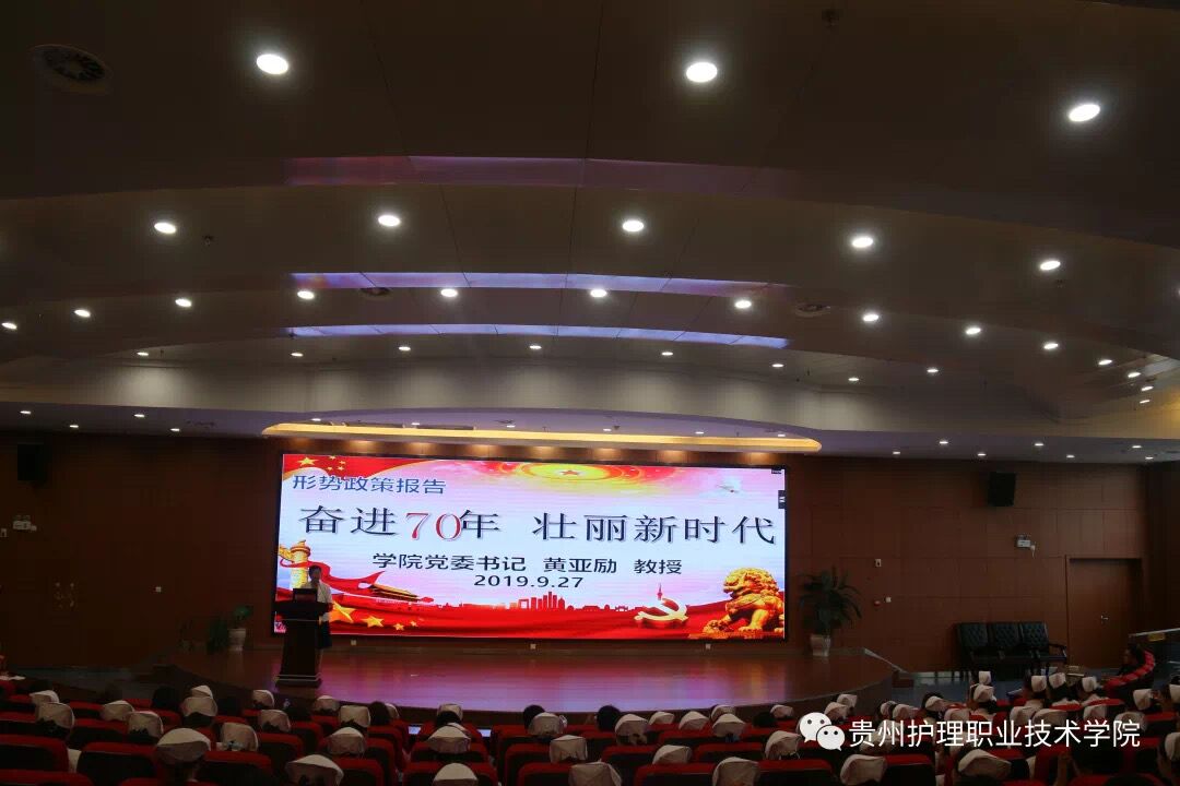 9月27日下午,学院党委书记黄亚励在金海校区学术交流中心做“奋进70年 、壮丽新时代”形势政策讲座。金海校区中高职共有338名学生现场聆听了讲座。