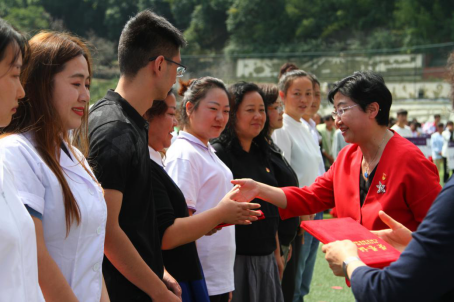 我院党委书记黄亚励为受表彰的个人和集体颁奖