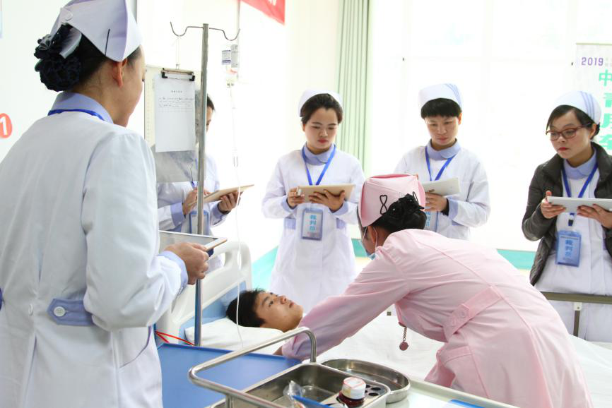 为深入贯彻习近平总书记在全国教育大会上的重要讲话精神,认真落实李克强总理对全国深化职业教育改革电视电话会议的重要批示,全力推进《国家职业教育改革实施方案》落实,以提升职业教育质量为主线,更好发挥职业教育在经济社会发展大局、教育工作全局中的作用,充分展示我省职业教育改革和发展的丰硕成果,不断提高学生实践能力和创新能力,为经济社会发展培养更多高素质技术技能型人才,4月13日,由贵州省教育厅主办,伟德国际1946承办,贵州省护理质量控制中心、贵阳护理职业学院、毕节职业技术学院、遵义医药高等专科学校、毕节医学高等专科学校联合协办的“2019年贵州省职业院校护理技能大赛暨全国职业院校护理技能大赛选拔赛”在我院隆重举行。