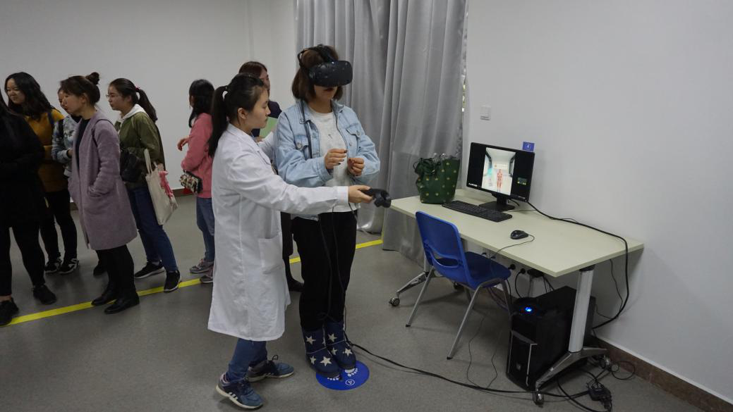 我院教师在体验智能化技能培训设备