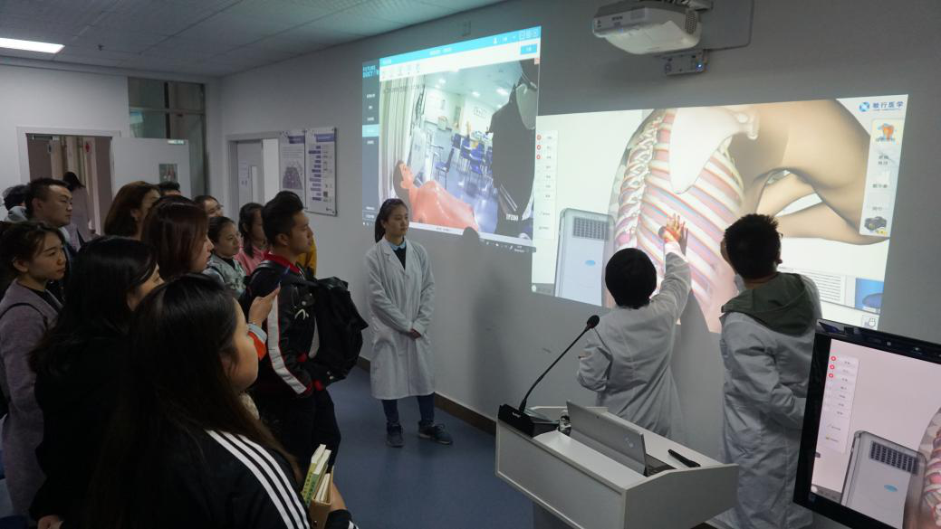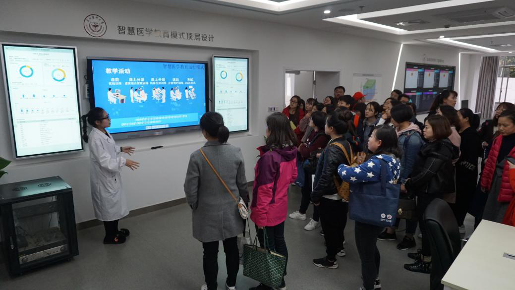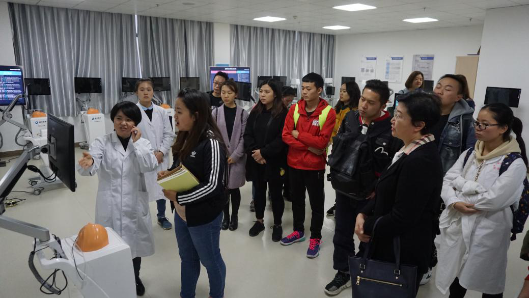 最后,黄书记与学院全体参训教师合影留念并前往贵州医科大学临床技能中心参观学习。临床技能中心解说人员细致地介绍了技能中心的教育模式顶层设计、大数据教育运营与管理中心、一体化教室、在线自主技能训练中心、智能情景化综合急救教学工作坊等多个区域,我院教师也亲身体验了各项教学设施设备。临床技能中心先进、完备的教学器械和一流、超前的教育理念都让我院教师受益匪浅。