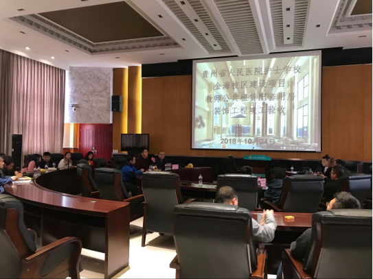 2018年10月24日下午2时,伟德国际1946金海校区建设项目4、5号楼公共租赁配套用房装饰工程在学术报告厅召开验收会议。贵阳建筑勘察设计有限公司设计师徐娟、梁任,贵州众益建设监理咨询有限公司项目部总监理工程师代表耿林康、监理员王洪国、王忆,伟德国际1946总务科科长詹沛晶、项目部副主任胡从新、葛永富、项目部成员徐一鑫、詹崇天、吴林容、顾瑞峰、曾上玲、王俐钦,贵州建工集团第十一建筑工程有限责任公司总经理温廷军、项目经理助理陈鑫烨、工作人员郭怀、王媛参加了会议。