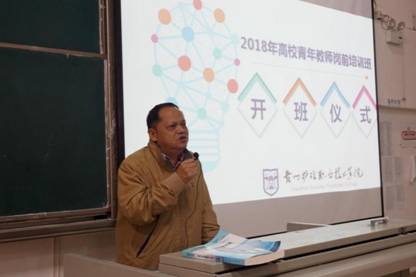 开班仪式上,学院院长、党委副书记李俊华发表讲话,他给参训的老师提出三点具体要求:一是认真学好四门课程,把握高等教育的规律及特点;二是为顺利走上高校教师工作岗位,做好理论专业知识、教学方式方法、心理适应等多方面准备;三是严谨治学、虚心求教、勤于思考,培训过程中加强交流、互相学习、共同提高。他还表示,希望大家通过此次培训,以及以后更多的培训,制定好自己的职业发展规划,进一步熟悉高等教育的发展规律及特点,做好教书育人的工作,切实肩负起“立德树人”的重托,为学校的发展和贵州省的高等教育事业贡献自己的聪明才智。