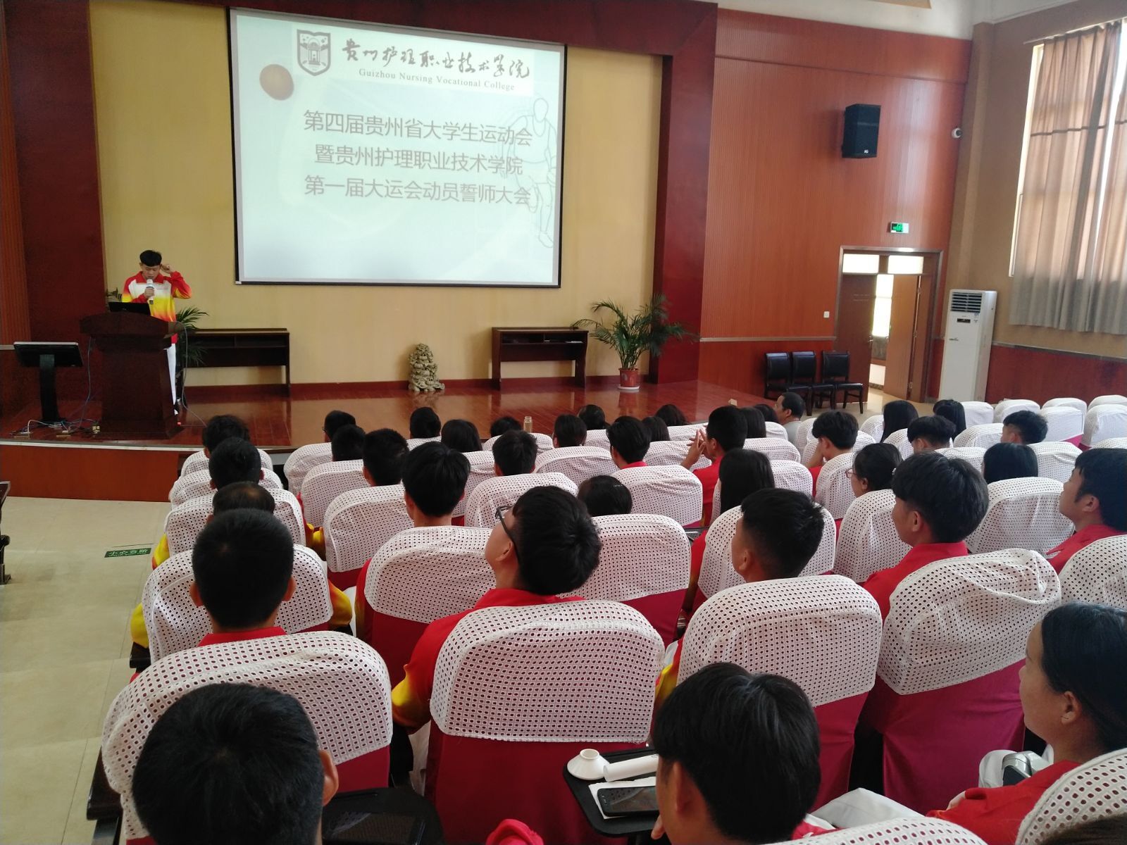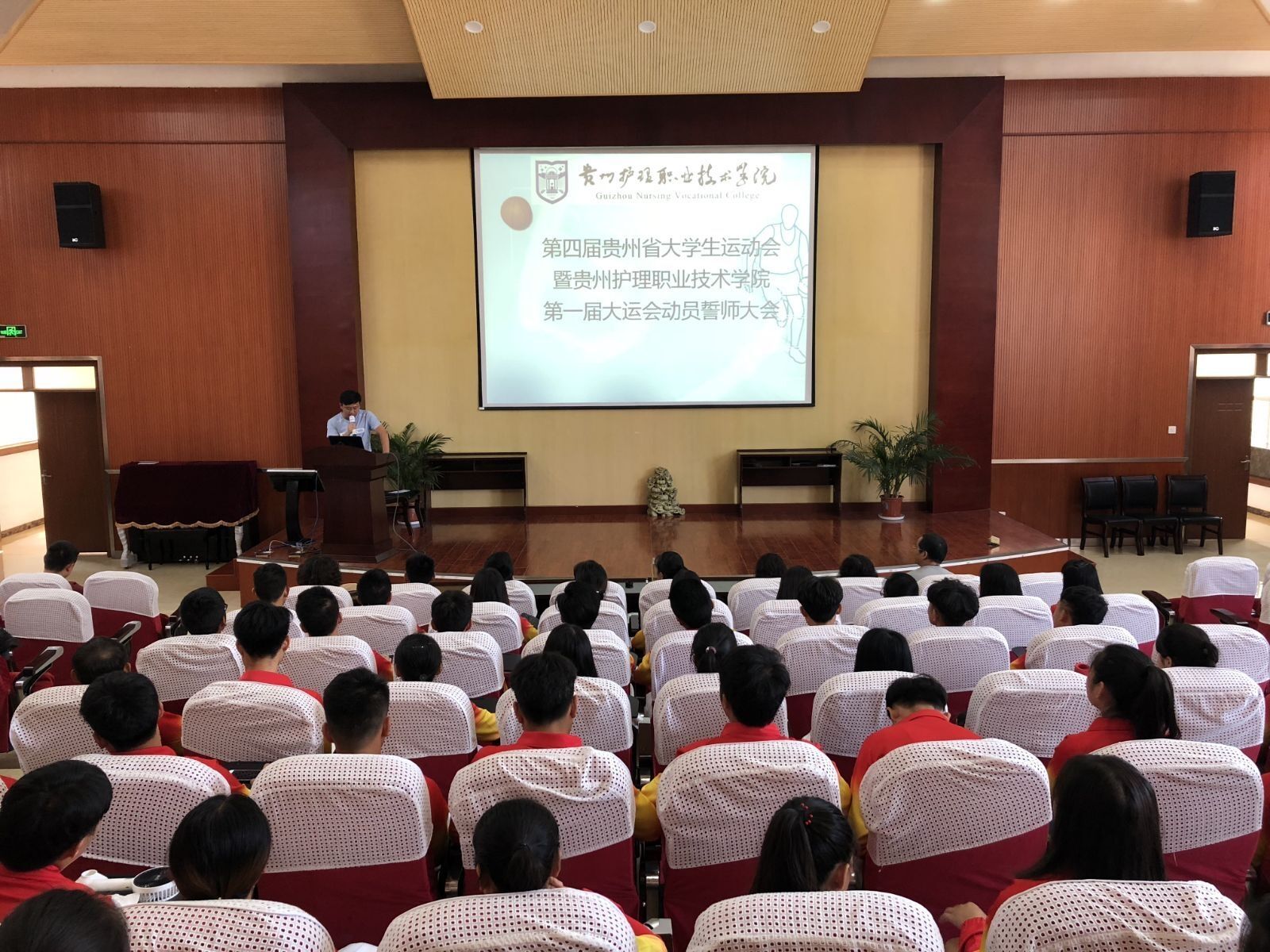 2018年6月8日11时,第四届贵州省大学生运动会暨伟德国际1946第一届大运会动员誓师大会在金海校区音乐厅召开。学校领导,全体中层干部及部分工作人员出席会议。会议由校团委书记李云飞老师主持,体育教研室全体教师暨教练员和全体参赛队员参加。