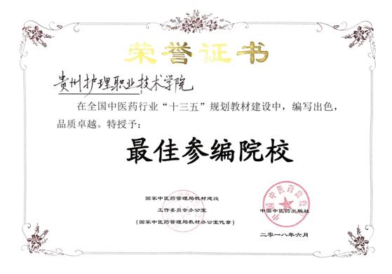 随后,大会还表彰了全国中医药行业职业教育“十三五”规划教材建设过程中的优秀院校,共设“最佳组织奖”“突出贡献奖”“最佳参编院校”和“优秀集体奖”四大奖项。我校共有15位老师参加高职护理专业、康复治疗技术专业的教材编写、7位老师参加中职护理专业的教材编写,由于我校各位参编老师在此次教材建设中的突出表现,荣获“最佳参编院校”奖项。