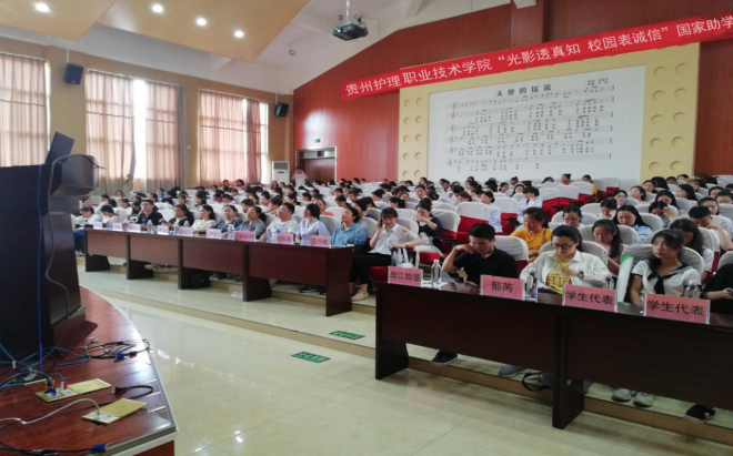 我院根据《省教育厅国家开发银行省分行关于举办2018年贵州省国家助学贷款诚信教育主题活动的通知》文件精神,于2018年5月21日特针对我院高职学生在音乐厅开展了 “光影透真知 校园表诚信”国家助学贷款诚信教育主题微电影大赛。