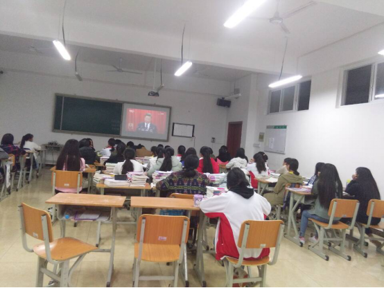 在教室,各班主任也组织学生通过电子白板多媒体网络设备收看十九大开幕式直播。习近平总书记在讲话中指出,全党要关心和爱护青年,为他们实现人生出彩搭建舞台。广大青年要坚定理想信念,志存高远,脚踏实地,勇做时代的弄潮儿,在实现中国梦的生动实践中放飞青春梦想,在为人民利益的不懈奋斗中书写人生华章。同学们在收看大会盛况后备受鼓舞,表示听了习近平总书记的报告后,更加清楚认识到身上肩负的历史重任,今后将不断学习锻炼,努力提高,为实现全面建成小康社会贡献青春和力量。