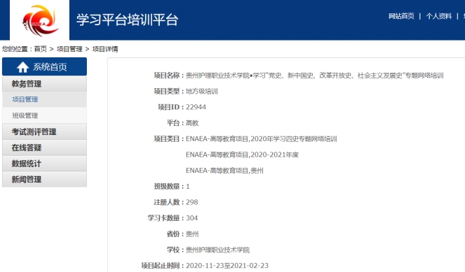 学好“四史”是牢记党的初心和使命的重要途径,也是爱国主义教育的重要组成部分。本次培训依托国家教育行政学院中国教育干部网络学院平台组织实施,培训期间参训学员以下载中国教育干部网络学院移动客户端(学习公社App)或登陆电脑端的方式随时学习。学院共304名教职工参与到本次培训当中,涵盖了一线教师、辅导员、行政管理人员和后勤管理人员。培训时间从2020年11月23日至2021年2月23日,历时3个月。