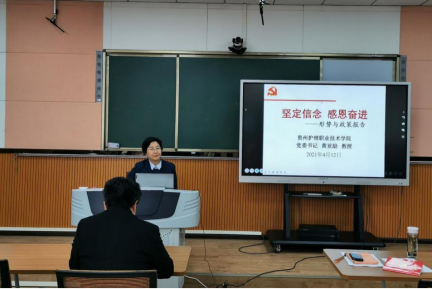 4月12日,黄亚励为公共基础部全体教职工和教师第二党支部全体党员、入党积极分予以及递交入党申请书教职工讲授了主题为《坚定信念 感恩奋进》的形势与政策报告。党委副书记吴忠红也参加了学习。