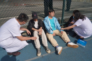 医务人员对身体不适的同学进行救治