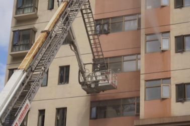 消防队员进行高空救援