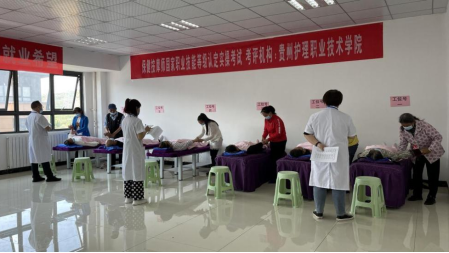 为深入贯彻落实习近平总书记视察贵州重要讲话精神和党的十九届五中全会、省委十二届八次全会精神,按照《人力资源社会保障部 财政部关于充分发挥职业技能提升行动专账资金效能扎实推进职业技能提升行动的通知》(人社部函〔2021〕14 号)相关文件精神,为确保脱贫攻坚目标任务完成后过渡期内帮扶政策总体稳定,2021年至“十四五”中期,全省继续实施农民全员培训,重点围绕脱贫劳动力、易地搬迁劳动力、农村低收入劳动力等持续加大培训和就业工作力度,我院受威宁县易地搬迁就业培训学校有限公司委托,对该校培训的58名务工人员进行保健按摩师(五级)登记考评工作。