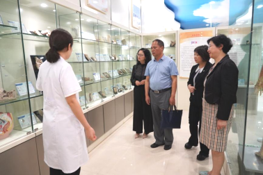 胡秀礼一行实地走访参观学院人体生命科学馆、实验实训中心、医学数字解剖实训室、职工书屋、校史馆、户外拓展基地、学生素养中心、茶艺轩等地,深入一线,了解基层工会会员的工作环境以及开展文体活动的场所。在调研中,胡秀礼赞扬了“甘于奉献、勇于担当、敢于拼搏、爱校如家”的护院精神,他表示,护院精神中的“奉献、担当、拼搏”都是推动工会发展、开拓创新必备的品质。此外,他认为职工书屋、户外拓展基地、茶艺轩这些场所进一步丰富了服务职工的载体,增强了职工群众的归属感、幸福感。